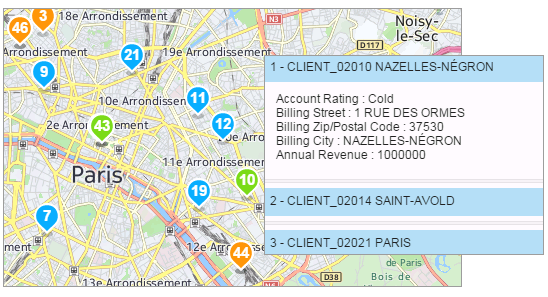 The customizable display of the accounts on the map makes it possible to create customized profiles (VIP customers, hot prospects, accounts to be visited…) and to taking the distribution of the portfolio at a glance.